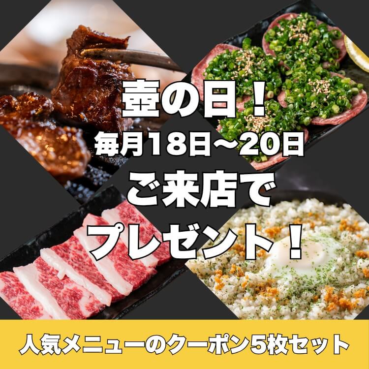 人気の「ハラミ」や「タン塩」など、本当に使いやすい特典を5枚セットに。